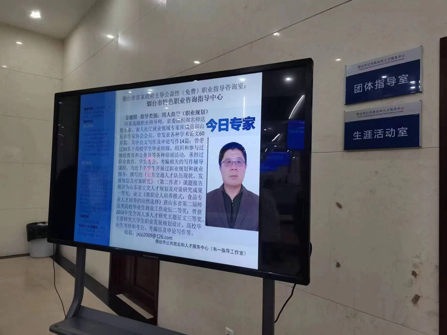 烟台市公共就业和人才服务中心全新打造的“烟台市特色(职业)咨询指导中心”正式对外开放,每周开放五天,每天主题不同专家不同,周一为求职(职业规划),周二是心理咨询,周三为创业指导,周四侧重人力资源管理,周五则为企业提供用人指导,所有服务全部免费!