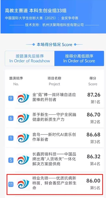 近日,中国国际大学生创新大赛(2025)全国总决赛在郑州大学举办。我校参赛项目《柿业先锋——优质抗病新柿苗,鲜食番茄产业新生命》经过激烈角逐,勇夺全国总决赛银奖。这不仅是我校在该项顶级赛事中的首个国家级银奖,更标志着我校创新创业教育质量实现历史性跨越。